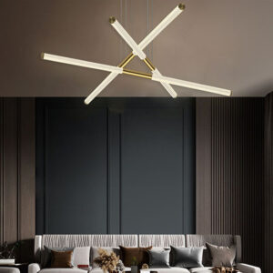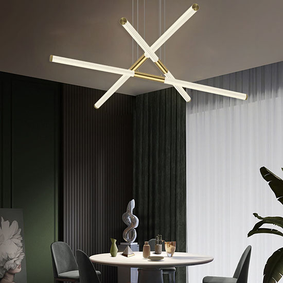 Colgante de interior LED doble altura acabado latón 60W – 4000K D:87cm H:200cm