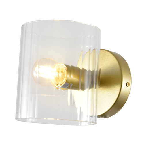 Lámpara de pared interior clásica acabado dorado y cristal transparente E27x1 – D:13cm H:15cm