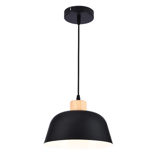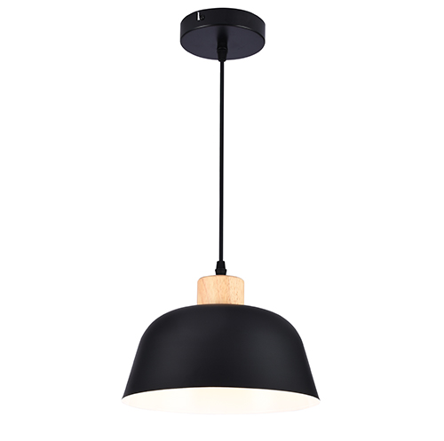 Colgante de interior minimalista acabado negro y madera E27x1 D:30.5cm H:160cm