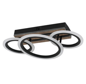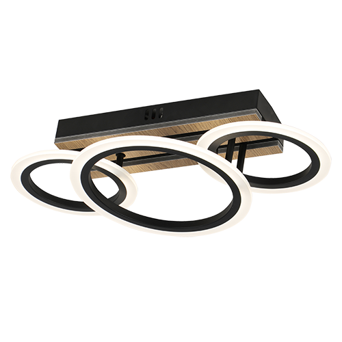Plafón de interior moderno acabado negro 3 aros LED con control 50W – 3CCT L:46cm D:25cm H:11cm