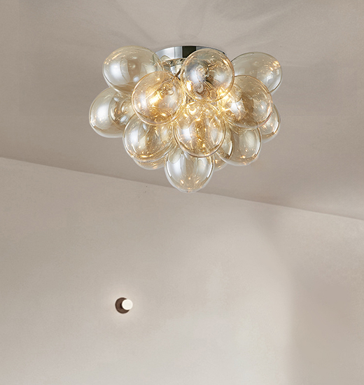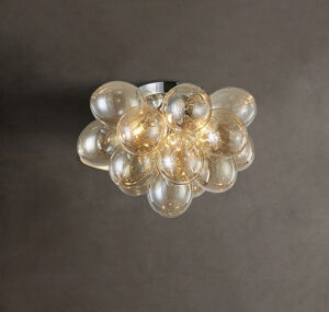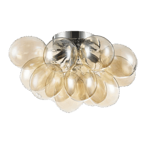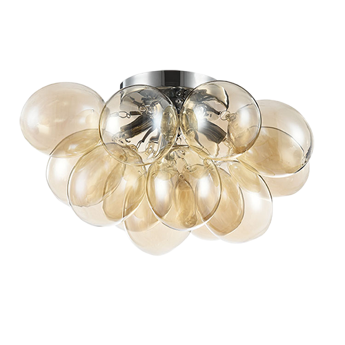 Plafón de interior clásico acabado plateado con cristal ámbar G9x3 – D:30cm H:32cm
