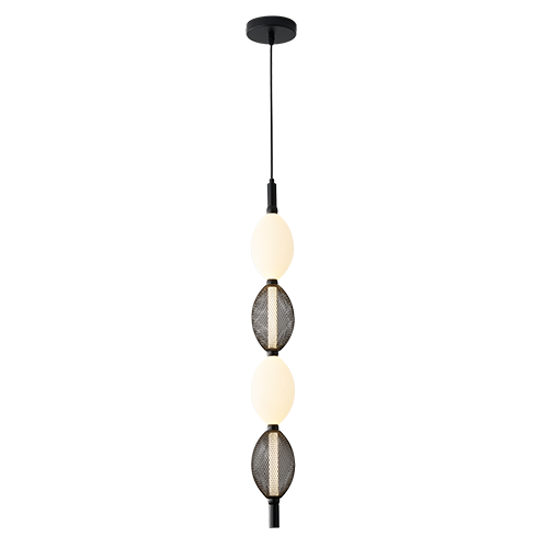 Colgante de interior LED acabado negro y cristal opalino 12W – 3000K D:16cm H:150cm