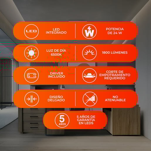 Spot de interior cuadrado para empotrar acabado blanco LED, 6500K – 24W D:28.5cm