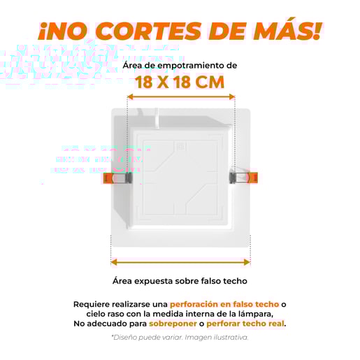 Spot de interior cuadrado para empotrar acabado blanco LED, 6500K – 18W D:21cm
