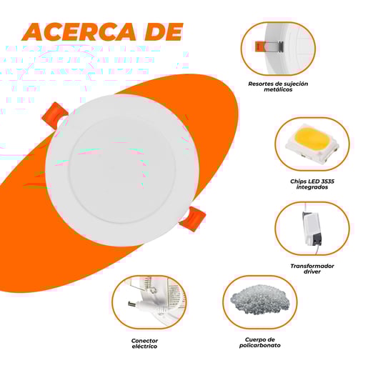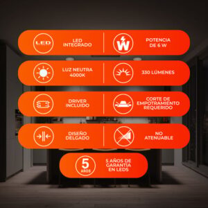 Spot de interior para empotrar acabado blanco LED, 6W – 4000K – 330lm D:10cm