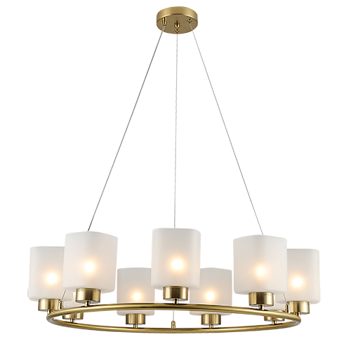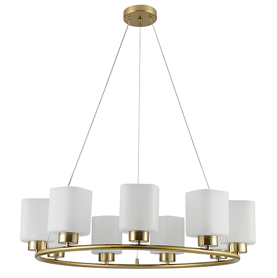 Clarisa I – Lámpara colgante de interior acabado dorado y cristal nevado, 9 luces