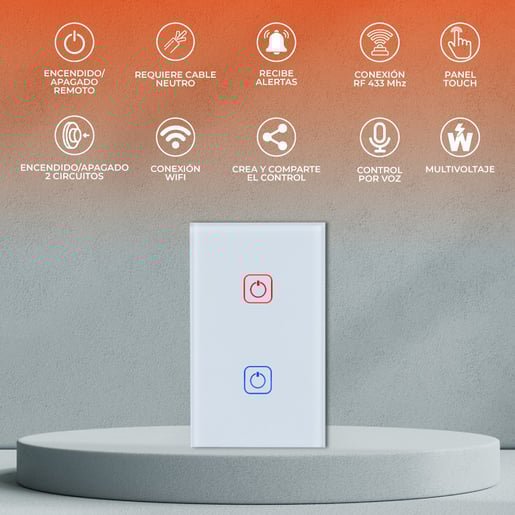 Apagador Inteligente WiFi 2 Circuitos, Requiere Cable Neutro, Compatible con App y Asistente de voz