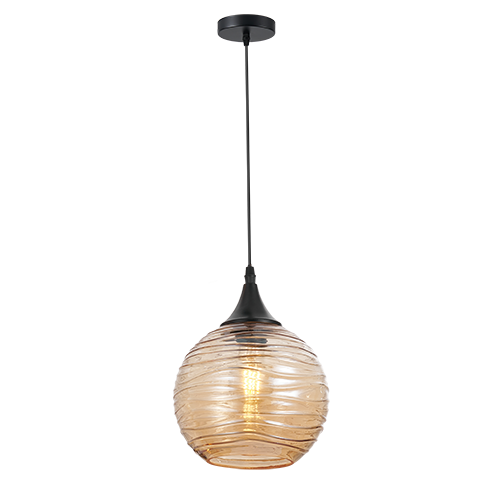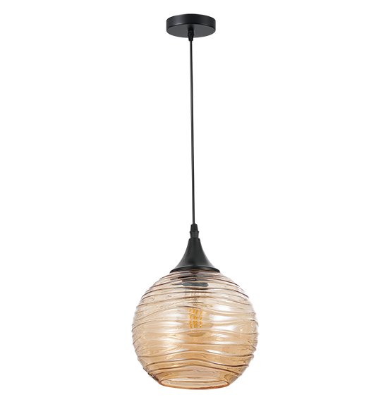 Colgante de interior acabado negro y cristal ámbar E27x1 D:20cm H:120cm