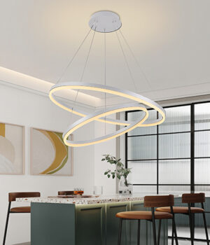 Colgante de interior moderno acabado blanco 2 aros LED 158W – 3CCT- D:84cm H:130cm con control