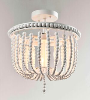 Lámpara de techo tipo semi-plafón clásico acabado blanco con cuencas de madera E12x3 D:45cm H:38cm
