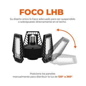 Foco LED de alta potencia 3 paneles ajustables, base E27 6500K – 35W D:22.37cm H:9.23cm