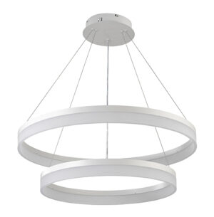Colgante de interior acabado blanco de 2 aros LED con control, 3CCT – 87W D1:80cm, D2:60cm H:150cm