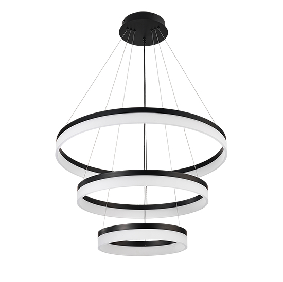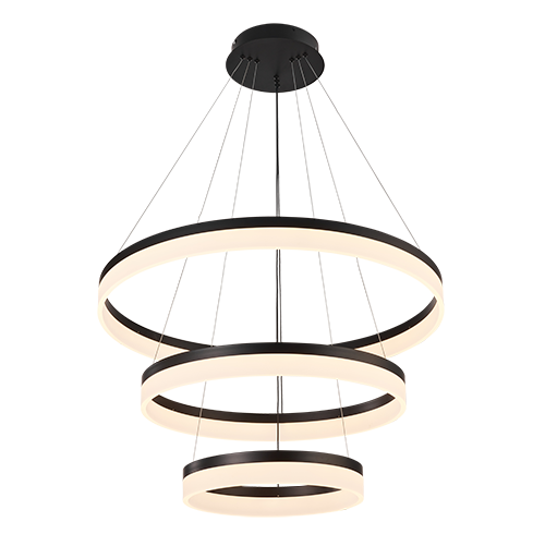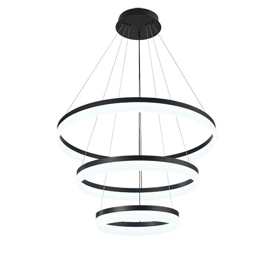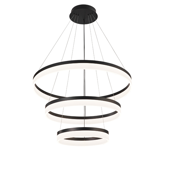 Colgante de interior acabado negro de 3 aros LED con control 3CCT – 120W D:80 D2:60 D3:40cm H:200cm