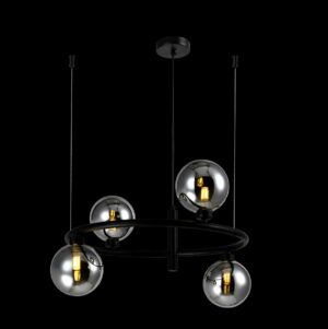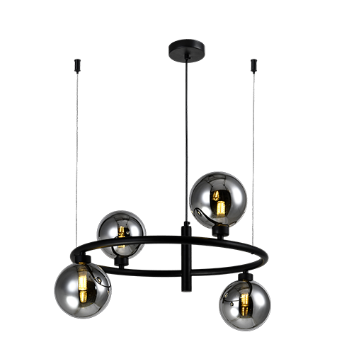 Liva – Lámpara colgante de interior acabado negro y cristal ahumado, 4 luces