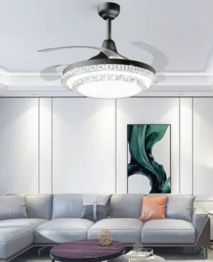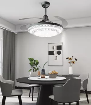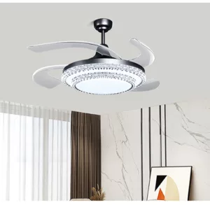 Ventilador retráctil de interior 42plg acabado plateado y aspas transparentes LED con control 36W 3CCT – D:108cm H:35cm