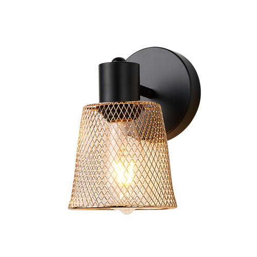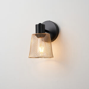 Lámpara de pared interior acabado negro y pantalla dorada E26x1 D:13cm H:20cm