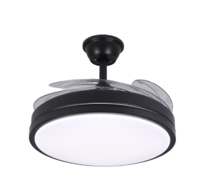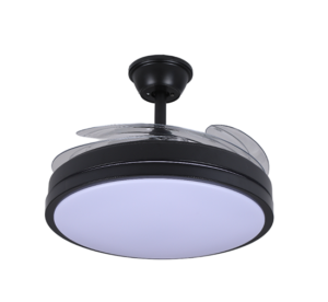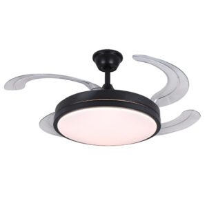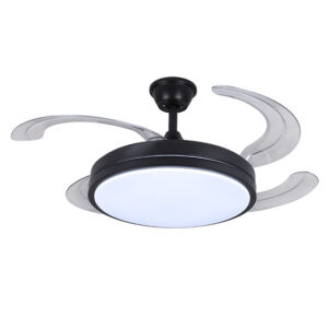 Ventilador rectráctil 42 plg acabado negro y aspas transparentes LED, 36W – 3CCT con control D:107cm