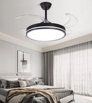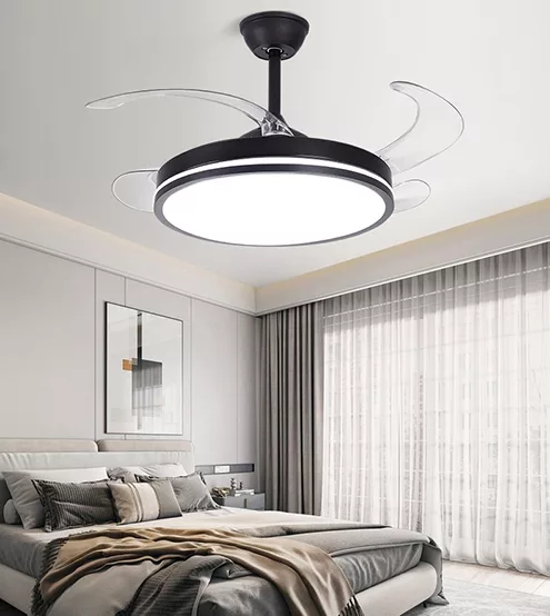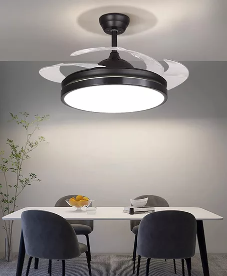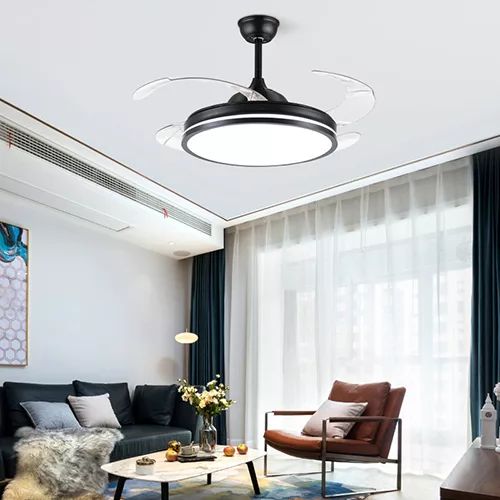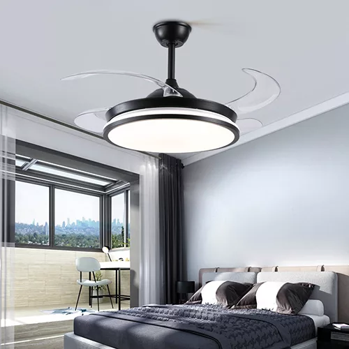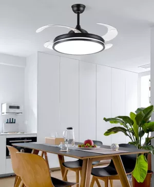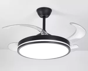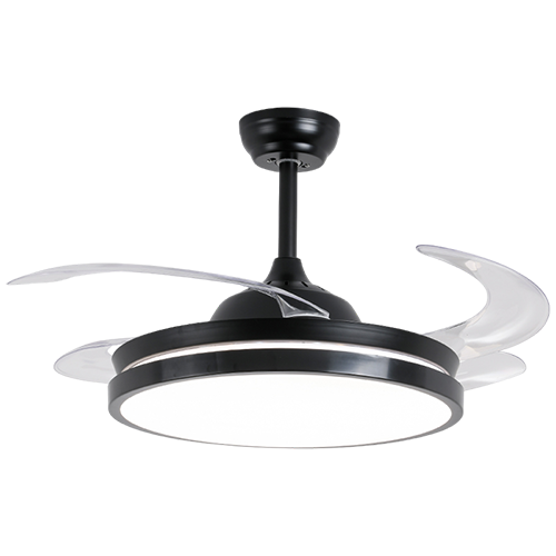 Ventilador retráctil de interior 42plg acabado negro y aspas transparentes LED con control 36W 3CCT – D:108cm H:35cm