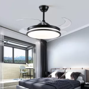 Milho I – Ventilador retráctil de interior 42 plg con control remoto acabado negro y aspas transparentes, 3CCT – 36W