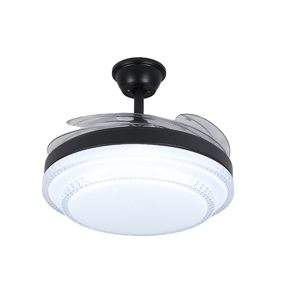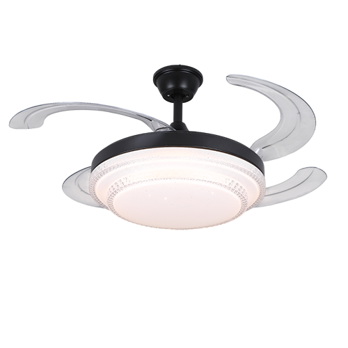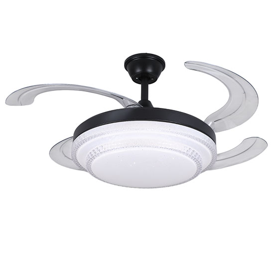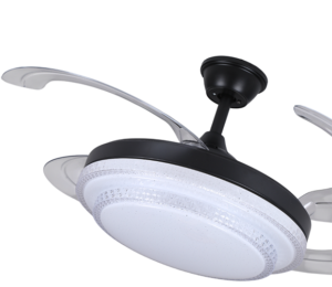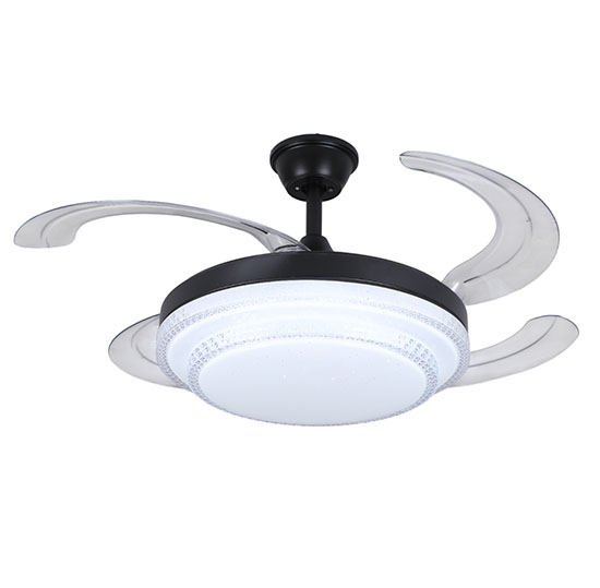 Ventilador rectráctil 42 plg acabado negro y aspas transparentes LED, 36W – 3CCT con control D:107cm