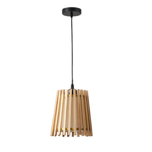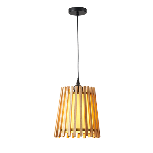 Colgante de interior minimalista acabado madera E26x1 D:20cm H:120cm