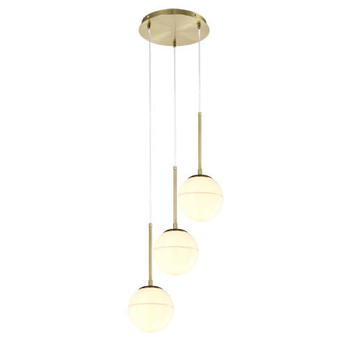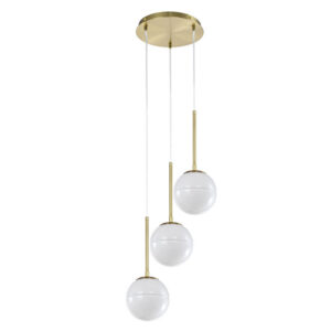 Colgante de interior doble altura acabado dorado y cristal lechoso E27x3 – D:25cm H:180cm