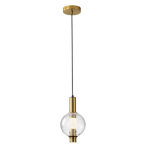 Colgante de interior LED acabado dorado y cristal transparente 9W – 4000K D:16cm H:120cm