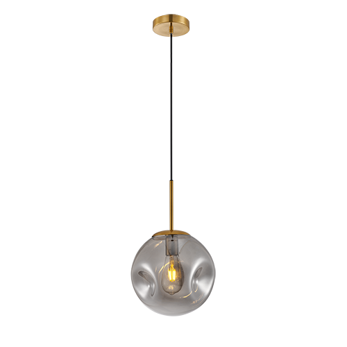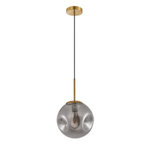 Colgante de interior minimalista acabado dorado y cristal ahumado E26x1 D:25cm H:120cm