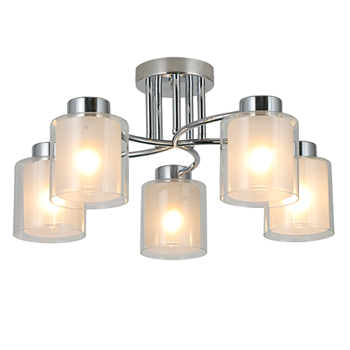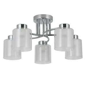 Plafón de interior clásico acabado plateado y cristal nevado/transparente E27x5 – D:51cm H:24cm