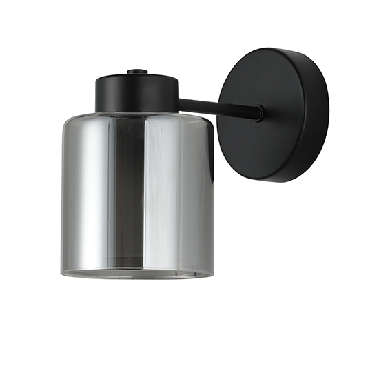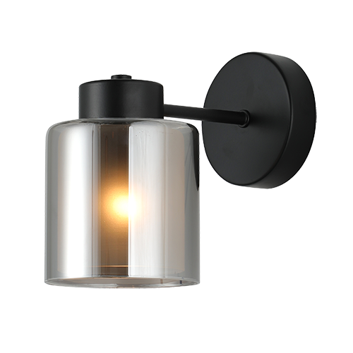 Lámpara de pared interior clásica acabado negro y cristal ahumado E27x1 – D:11cm H:17cm