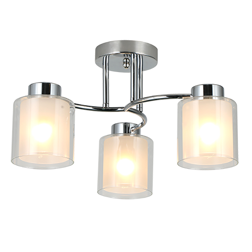 Plafón de interior clásico acabado plateado y cristal nevado/transparente E27x3 – D:45cm H:24cm