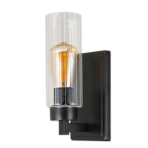 Lámpara de pared interior acabado negro y cristal transparente E27x1 D:12cm H:27cm
