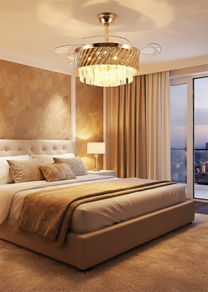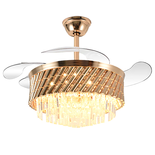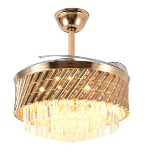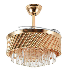 Ventilador retractil 42 plg acabado dorado y cristales, LED con control 72W – 3CCT – D:106cm