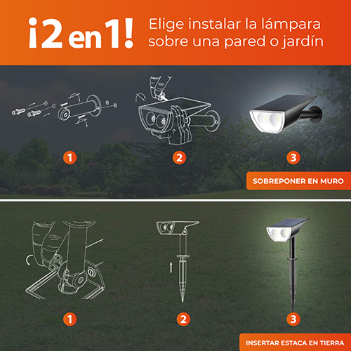 Lampara tipo reflector de exterior acabado negro 1.5 W 3000k D:11.8 cm H:29.2 cm