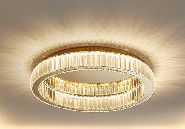 Plafón de interior LED acabado dorado y cristales 3CCT – 34W D:40cm H:11cm