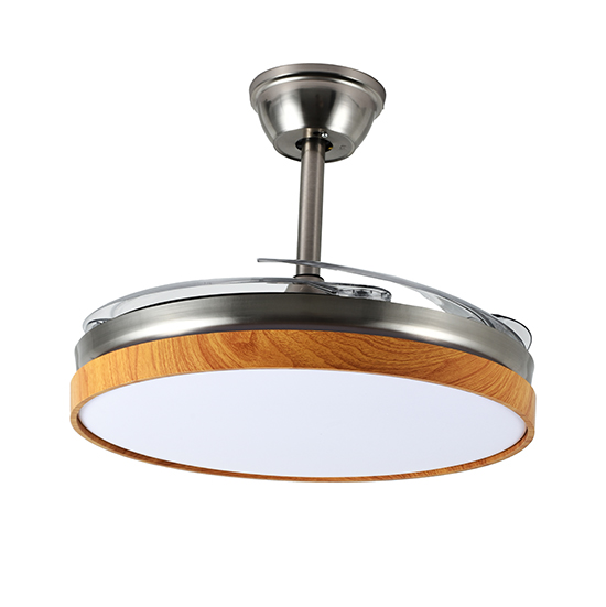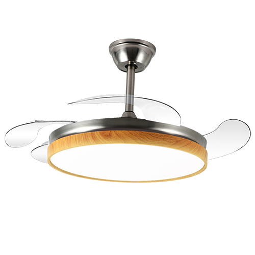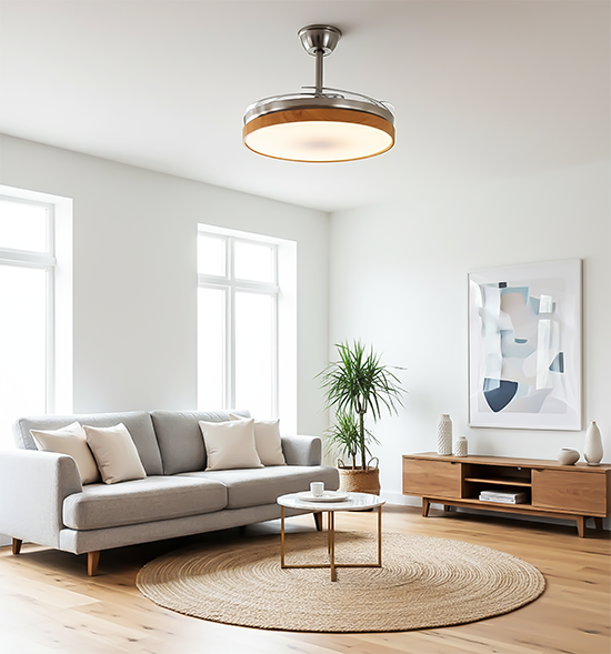 Sakura – Ventilador retráctil de interior 42 plg con control remoto acabado madera y aspas transparentes, 3CCT – 72W
