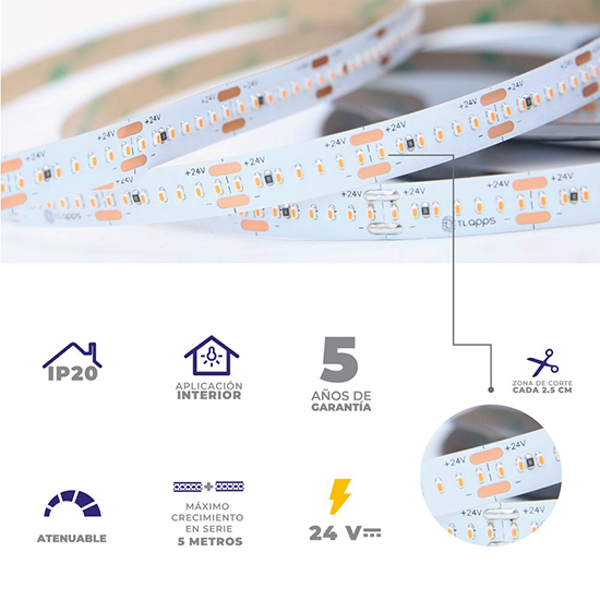 Tira LED flexible 2110 SMD para interior, 6000K – 95W atenuable