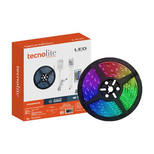 Tira LED para interior y exterior de 5 metros atenuable con control remoto, RGB – 24W
